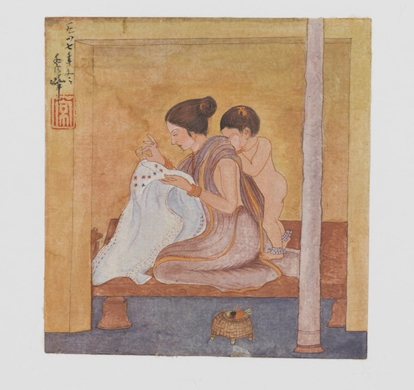 常秀峰回忆:“ 1947年夏末,自入学国际大学不久,吾师南德拉鲍斯首次命余临摹一幅印度古画,观其技法构图,既有我国宋画遗意,亦有埃及波斯风味盖为印度莫卧儿王朝遗珍也。”