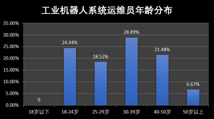 工业机器人产业的兴起对就业结构、就业形态、就业质量及就业制度产生划时代的影响。在我国,随着劳动年龄人口下降,劳动力供给速度趋缓,“招工难”现象逐渐凸显,人工智能带动的“机器换人”成为缓解用工紧张的有效途径。目前工业机器人系统操作员的就业景气度如何,2019年5月27日-2019年5月31日,针对工业机器人方向领域从业人员群体通过问卷调查法进行抽样调查,这部分从业人群呈现以下特征: