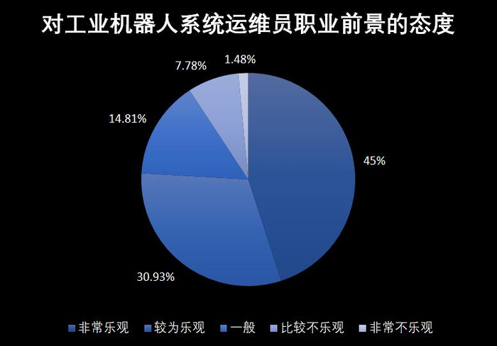 6、【职业前景】84.93%工业机器人系统运维员职业从业人员中对自己的职业前景是抱乐观态度的,可见这个职业的离职率和转岗率是很低的。在国家的相关政策指导下,相信工业机器人系统运维员的从业人员会越来越多。