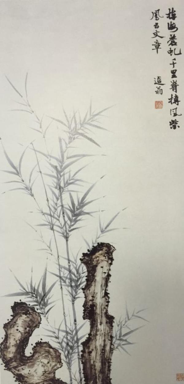 叶恭绰 竹石图 纸本设色 99×47cm 广东番禺博物馆藏