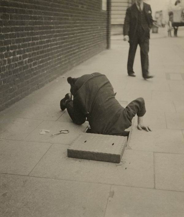 玛尔在风格上的转变往往是巨大的。在那些超现实主义作品之前,是一系列摄于巴黎、巴塞罗那与伦敦的街头摄影作品。这些作品非常黑暗,拍摄对象都是城市贫民,风格则是赤裸裸的单色。在一幅伦敦街景中,一位老妇人在牛津街一家银行的钢柱下卖彩票。一名年轻女子用披肩裹住婴儿,面向充满未知的风景,她的身后则是一个占卜摊。在另一个系列中,新闻摄影的风格转向了对于普通事物不露痕迹的观察:一面阴影斑驳的墙下,一条刚刚经历过雨水冲刷的街道被人行道从左下至右上分成两段。同样的线条与形状构图可以在一幅摄于巴塞罗那的街头肖像中看到:一名弓着背的女子背对着镜头站在画面的左前方。这些图像稀松平常,却在脑海中挥之不去。街头摄影安静而神秘,俨然已经完成一场超现实主义的实验。