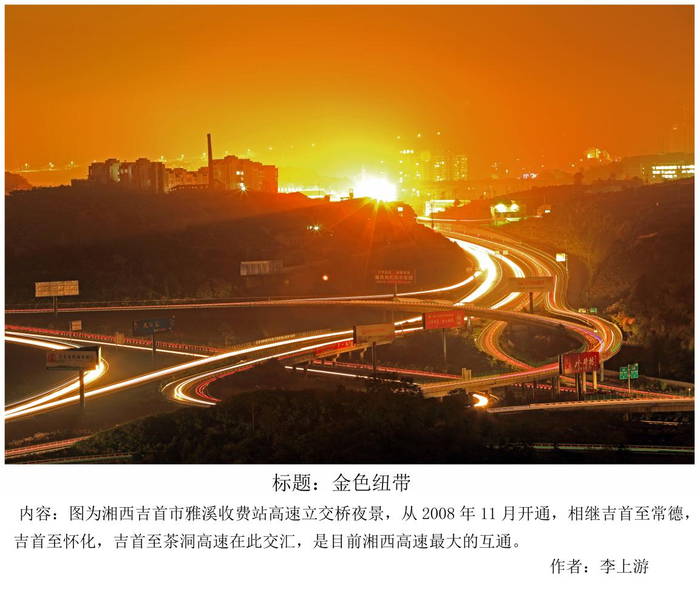 图为湘西吉首市雅溪收费站高速立交桥夜景,从2008年11月开通,相继吉首至常德,吉首至怀化,吉首至茶洞高速在此交汇,是目前湘西高速最大的互通。(摄影:李上游)