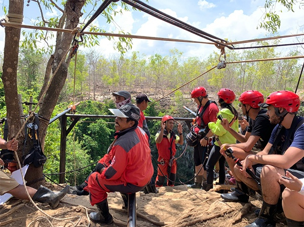 看过那么多自然纪录片,没有想到有一天,自己能在爪哇的一个偏远山村里,体会一把科考队员下坑作业的惊心动魄。不过幸好,双脚离开地面的恐惧在下落3秒后就结束了。绳索下降的速度也比想象的快很多,以至于还没有欣赏完崖壁上的风景,双脚已经着陆了。