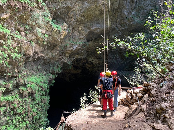 本来以为高空绳降已经是此行最“困难”的一部分了。没想到在黑黝黝的洞窟里行走也并不是一件易事。