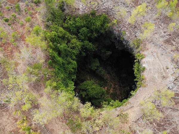 这个距离中岜朗天坑500米的垂直洞穴叫做“格鲁布格洞穴(Grubug Cave)”,洞口直径比中岜朗天坑小,但是深度达90米。听当地人说,“上帝之光”仅从上午10点到正午12点存在,短短两个小时,若是遇上阴天或雨天,这样的景色就很难见到了。而今年,印尼推迟的雨季让我们幸运地还能在10月下旬看到这般光景。