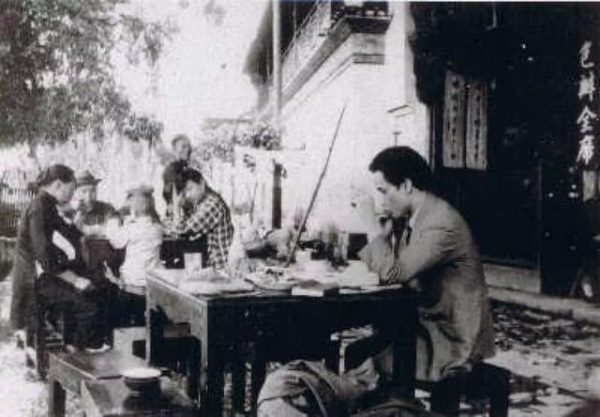 芥川在西湖楼外楼用餐时,邻桌坐着一个中国家庭 村田孜郎图