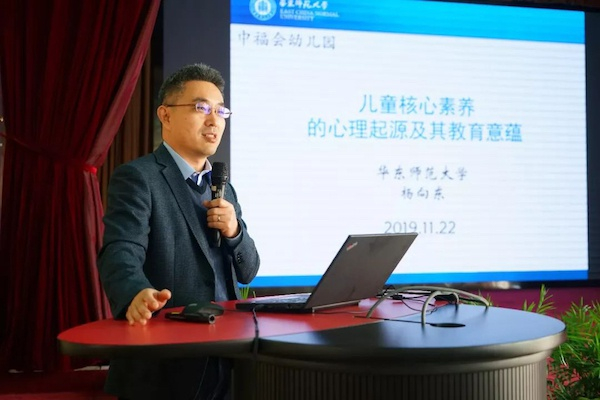 在专题讲座与研讨环节,杨向东教授从核心素养在儿童身上的心理发生起源、不同核心素养的彼此关系,以及环境和教育对于儿童早期素养形成和发展的作用机制,阐述了指向儿童核心素养发展的教育建议,对于各级各类教育具有较高的理论和现实意义。