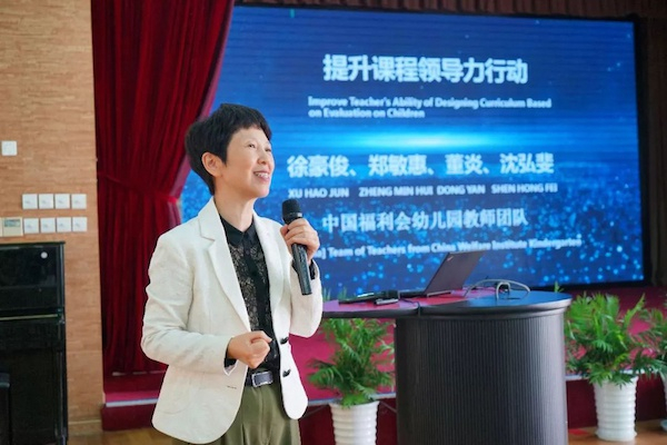 中福会幼儿园教师团队徐豪俊、郑敏惠、董炎、沈弘斐,分别从青年教师、骨干教师、园所管理、科学研究的角度阐述了如何让教师成为真正的课程领导者,确保课程稳妥地实现预期目标。