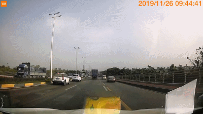 等来到泥湾门大桥桥面上时,两车是相互竞驶,互不相让。原本走在最左车道上的海马小车向右打了一把方向,跑到了大众小车前面。尽管车上的妻子一直劝阻余某不要斗气,但余某就是不予理会。▼