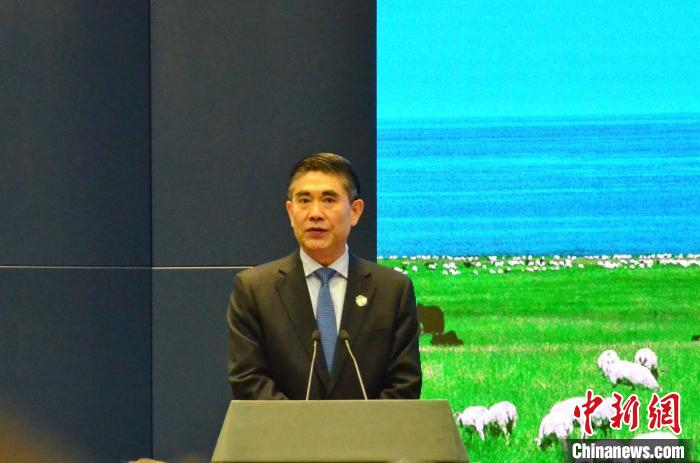 图为中共青海省委书记、省人大常委会主任王建军26日在外交部青海全球推介活动上致辞。 鲁丹阳 摄