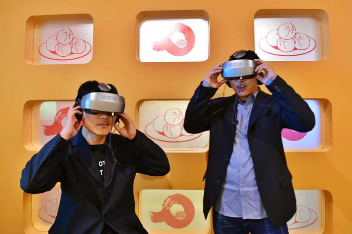 第三展室里的庆丰包子铺和庆丰工厂的模型,则展示出店里的明厨亮灶和现代化的馅料生产流水线。展区里还有“黑科技”,参观者只要戴上VR设备,就能进入庆丰工厂,“实地”观看工厂里选肉、择菜、绞肉等全部生产过程。