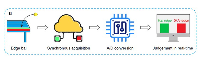在球类比赛中,我们经常能看到基于高速摄像头的鹰眼或者VAR(视频助理裁判),这类技术的应用可以避免裁判主观判断引起的争议,提高竞技体育的公平性,但由于成本较高,在小级别赛事和日常训练中难以推广。北京时间11月27日0时,《自然-通讯》杂志发表的论文提出了一种新方案——一张能够检测乒乓球球速、跟踪运动路径、帮助裁判判断擦边球的智能乒乓球桌。