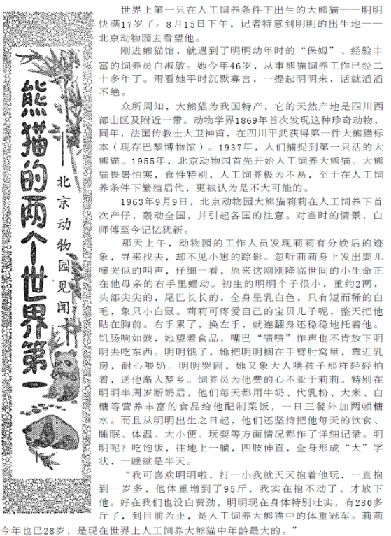 1963年9月9日,北京动物园大熊猫莉莉在人工饲养下首次产仔,轰动全国,并引起世界的关注。熊猫幼崽明明是世界上第一只在人工饲养条件下出生的大熊猫。