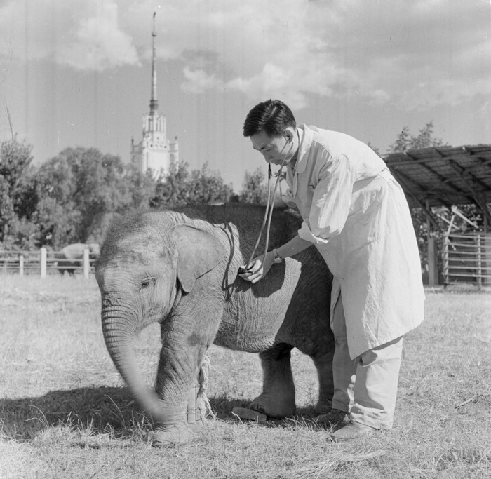 1962年,动物园的大夫在给大象治病。冯文冈/摄
