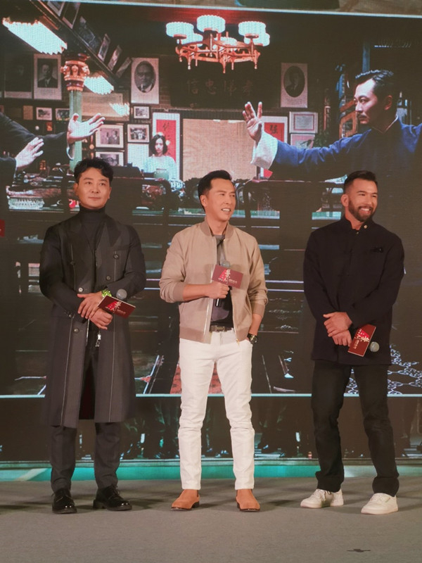 “前两部叶问电影的动作导演是洪金宝,第三部叶问的动作导演是我师傅袁和平,这次我也和师傅设计了很多意想不到的动作。我非常自豪,和一般的电影续集越拍越走下坡不同,每一集(《叶问》电影)大家都很喜欢,现在是时候给这个系列画上一个完美的句号了,希望这四部电影能在历史上留下一笔。”甄子丹说。而就此结束这一电影IP,其实并不令人十分惊讶,此前定档海报上就有“十年传奇,最后一战”字样。但之后,在台上被问及此前有消息称《叶问》系列完结篇也将是他最后一部此类型的纯功夫片时,甄子丹则多少有些动情,在现场摆放的经典道具木人桩上签下“再会”二字。“武侠片、功夫片是我们中国电影独有的特色,之前我其实是,更喜欢时装动作片的,是《叶问》改变了大众对我的印象。是的,《叶问4》将是我最后一部功夫片,我觉得差不多了,但演员必须要继续往前走。”