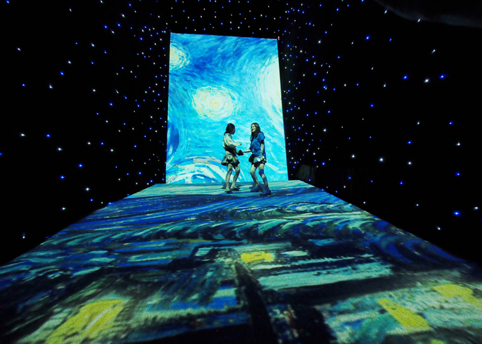 2015年,上海展出的《不朽的梵高》,用sensory4感映技术结合多路动态影像、影院级环绕音响和40多个高清投影,将梵高3000多幅画作的细节放大,但对纯粹的艺术爱好者来说,这种形式大于内容的展览,几乎像是一场幻灯片播放,现场变成支离破碎的炫目色彩展示,丧失了观看梵高画作的乐趣。