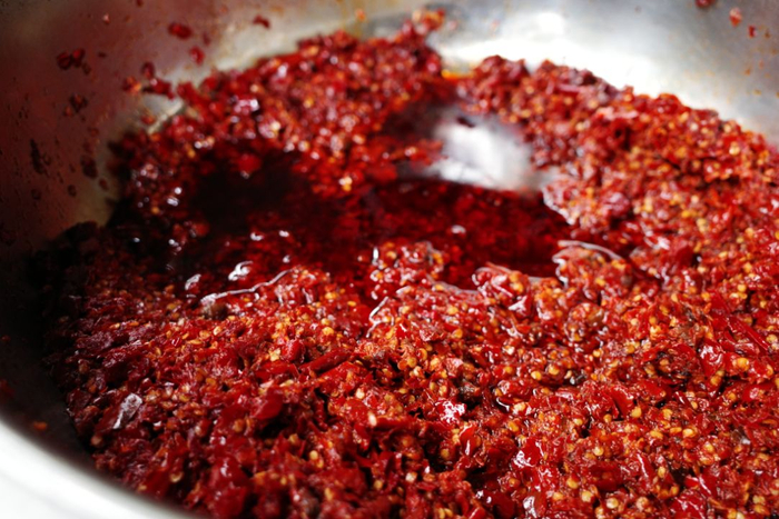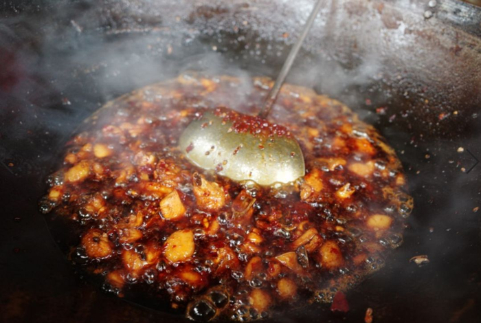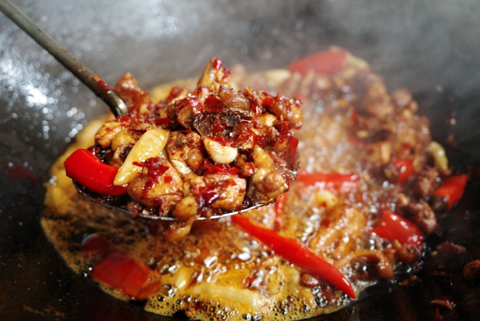 贵州辣子鸡的烹饪绝对离不开糍粑辣椒。