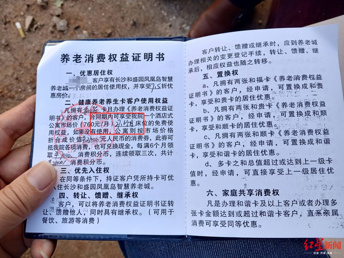 这份《养老合同书》显示,和盛园给桂姨的“待遇”是:在其入住凤凰岛(位于长沙市浏阳市的养老服务点)时,可以享受酒店式公寓7.5折房费。