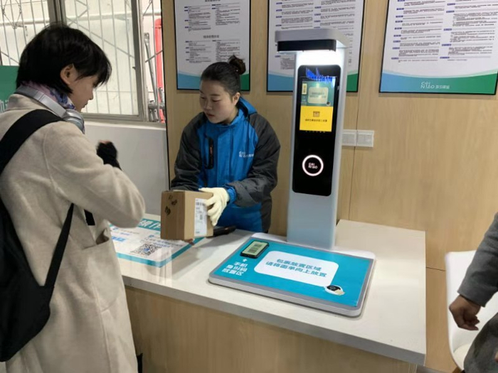 该快递服务中心位于东园学生宿舍6栋与8栋之间(原洗衣房处),面积约300平方米,功能区包括寄件咨询区、货架区、出库区、绿色回收拆包区、分拣区和活动区。站点采用自助取件模式,配置了人脸识别寄件机、智能终端无人出库机、云监控等智能设备,提高了站点作业效率和服务水平,告别了以往“排长队”,师生蹲在马路边寻找快递的囧境。