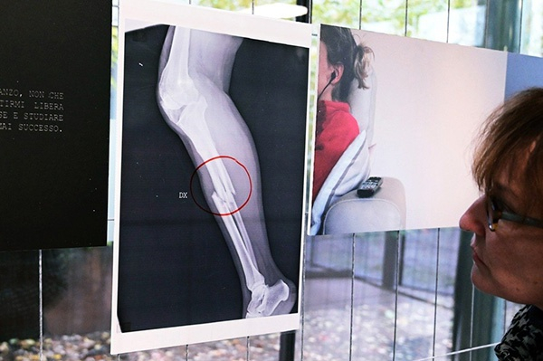 展览中一张X光片的主人这样描述着自己的经历:“他一边揍,我一边数着自己被揍了几下——因为分心才不会那么痛,不然我可能就死掉了。”她清楚地记得,自己被揍了43下。
