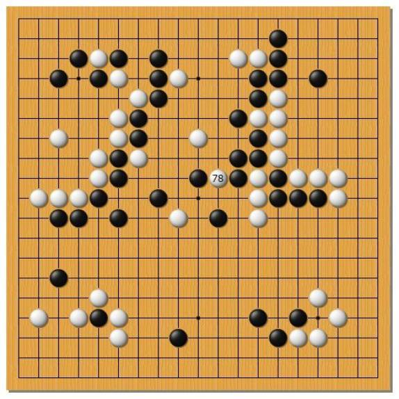 李世石执白对阵 AlphaGo,李世石的第 78 手被认为是载入史册的妙手。中国著名棋手古力当时评论道:「如果这盘棋能赢,就是千古名局。」