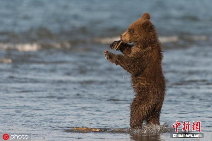 资料图:当地时间11月19日报道,50岁的摄影师Liana Varacskaia在俄罗斯南堪察加自然保护区拍摄到了棕熊跳舞的有趣画面,一只6个月大的棕熊宝宝正在热舞。图片来源:IC photo