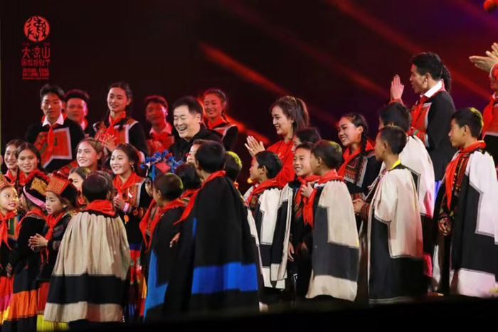 濮存昕和大凉山的孩子们一起登台表演。