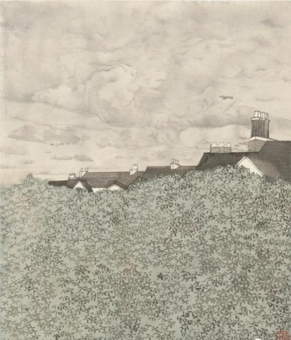 展览展出画家、书画研究者黄朋的画作,黄朋出身书法世家,自幼含毫濡墨,又经过国画、美术史专业的学院教育,且在上海博物馆书画部工作多年,书画仿佛自然而然地印在她的生命里。梧桐这个主题,黄朋画了十几年,与大多数学院派“新水墨”追求造境新奇或所谓立意的“当代性”相比,她的画看似“平实朴素”,但赖以组织画面的线与墨色却分明地显示出视觉造型与笔墨书写双重意味,耐人观摩。