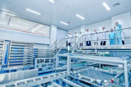 更换无菌衣帽、穿戴鞋套,经过严苛的消毒程序后,《中国健康经济白皮书2019》课题组一行进入无限极口服液自动化生产车间和产品检测中心实验室参观。不久前走在厂区里,还能闻到酱料飘香,沉浸在过小日子的“烟火气”里,而此刻步入科技感十足的现代化实验室,却犹如走进科幻电影里一样。只见玻璃间里,科研人员正在操作实验,各类精密仪器有序运转。