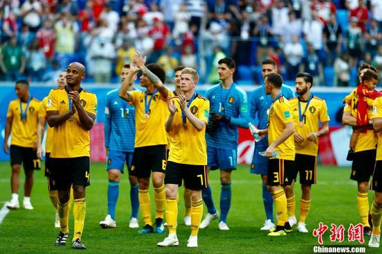 资料图:比利时获得世界杯季军。赛后,比利时球员庆祝胜利。 中新社记者 富田 摄