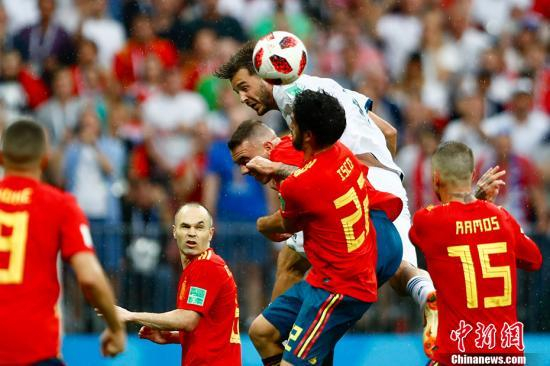 资料图:“斗牛士”西班牙不敌东道主俄罗斯队,无缘俄罗斯世界杯8强。 中新社记者 富田 摄