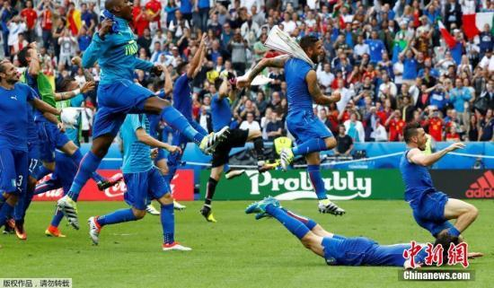 资料图:意大利在16年欧洲杯上战胜西班牙晋级八强。