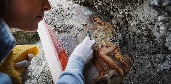 这幅壁画发现于2018年11月,清理和维护工作持续了一年。庞贝遗址总监,考古学家 Massimo Osanna表示:“这幅壁画的特别之处在于,创作者生动刻画了丽达充满情欲的眼神,每个进入卧室看到这幅壁画的人都无法忽视她的视线。”