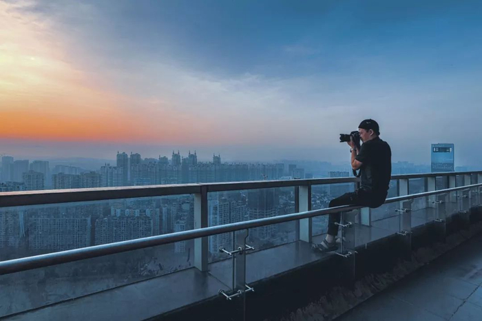 2017年6月5号那天,他登上龙泉山的时候,云雾正好都消散掉了,阳光也刚好。他一连拍摄了32张照片,最后接成了这么一张照片。