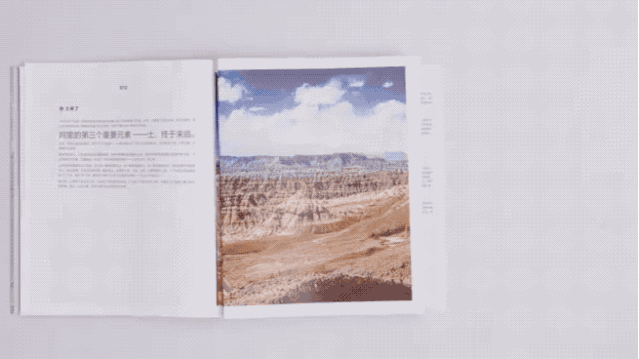 为了展现一些超全景的景象,这本书里面有一张一米八的长图,拍摄的是西藏阿里地区的扎达土林,它总共的长度是170千米,在远古时期它是一个大湖,湖泊干涸过程造成大量的沉积,就形成了这个扎达土林。
