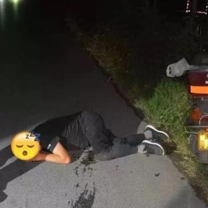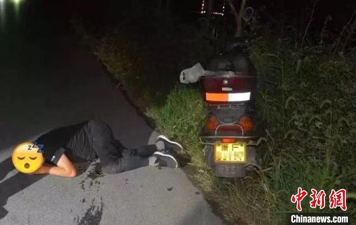 醉酒驾驶摩托车的陈某摔倒在地。嘉兴公安供图