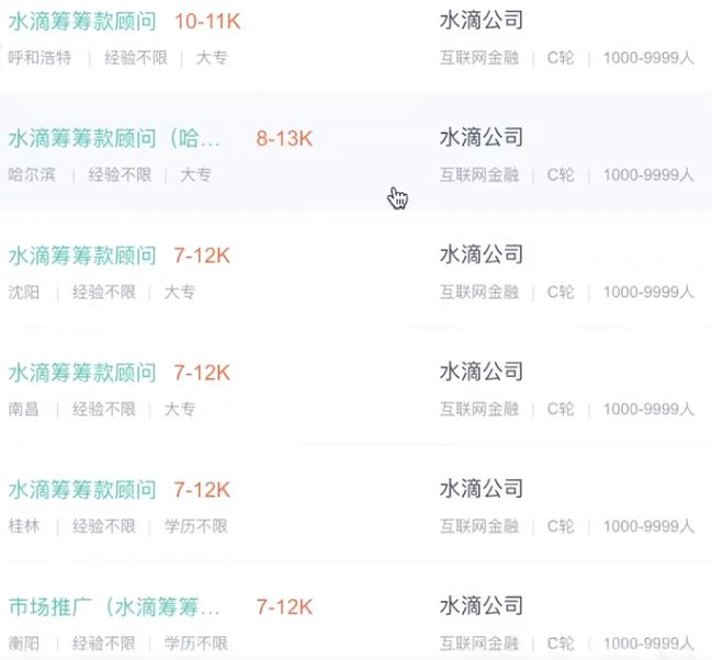 水滴筹在全国四十个城市以上,大量招募正式和兼职的“筹款顾问”。