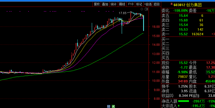 12月2日,临近上午收盘,创力集团股价突然闪崩跌停。截至发稿,该股仍封死跌停板,报15.52元,封单近超过16万手。
