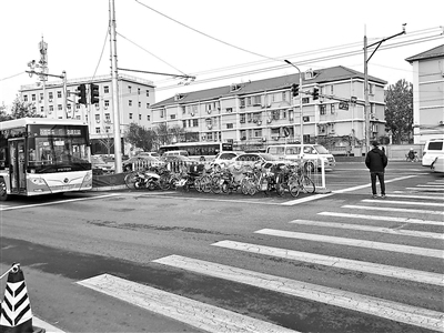 除了公交车,还有电动自行车也会快速经过此区域。“这个地方离门口比较近,也一直是有人停、没人管,所以很多人就觉得这里可以停车,但是确实挺危险的!所以我都是停在那种指定的位置,就算有点远,但走几步也不碍事!”正准备停放自行车的崔阿姨告诉记者。