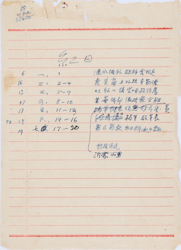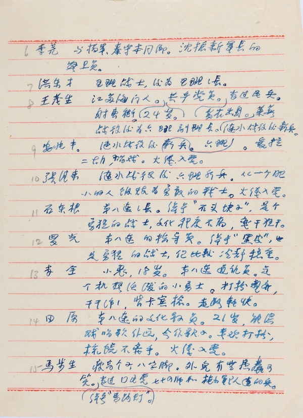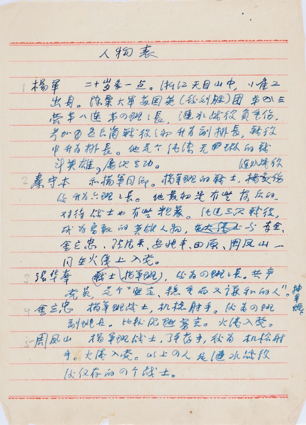 陈梦家豫剧剧本《红日》手稿中的人物表