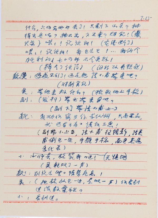 陈梦家先生剧本手稿提纲里面说到为了照顾农村中的业余剧团,或许可以推测剧本是给他们村里的,或者可能是乡里的业余剧团所用。当时县里已经有专业剧团了,曲周县就有一个豫剧团,可能就是乡里那些农村的业余剧团,农村剧团在农村演出,为乡里编的。