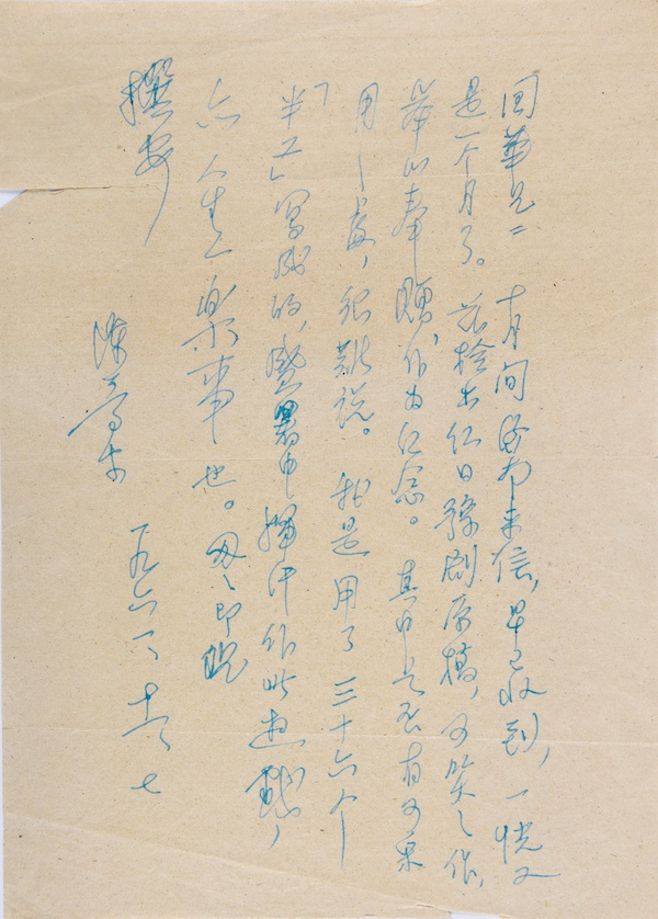 陈梦家豫剧剧本《红日》手稿中附的一封陈梦家的信