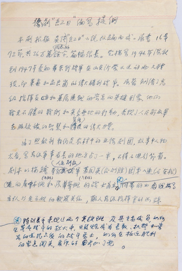 陈梦家豫剧剧本《红日》手稿