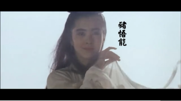 短短十五秒的视频片段犹如一处河流交汇之地,你在此掬起一捧水,里面汩汩流淌着全部的西游文本序列、王祖贤永留影史的仙姿玉色和香港电影去而难返的黄金年代。同时这捧水又不止于此,在广为人知的素材被遴选、重组、并置之后,它早已转化为新的水系,有着自己独一份的清冽甘甜。