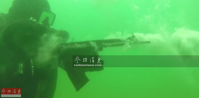 美民企研发的新型水下步枪进行水下连发射击动态图。
