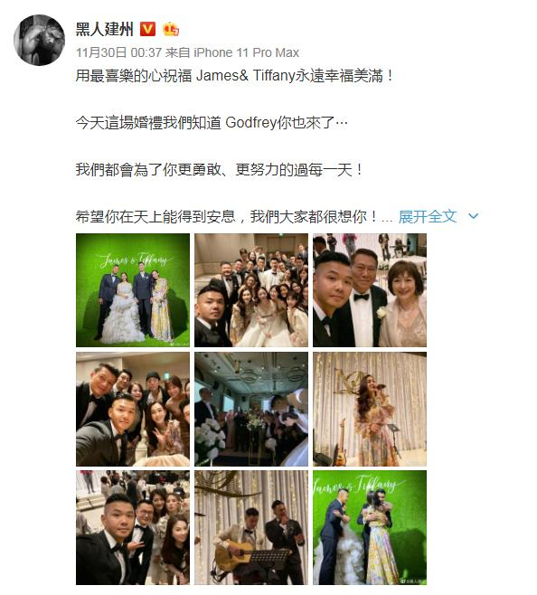 与高以翔好友多年的陈建州也参加了婚礼,他发文说:“今天这场婚礼我们知道你也来了,我们都会为了你更勇敢、更努力的过每一天,希望你在天上能得到安息,我们大家都很想你!”