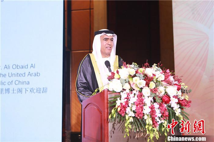 图为阿联酋驻华大使阿里·扎希里致辞。大使馆供图