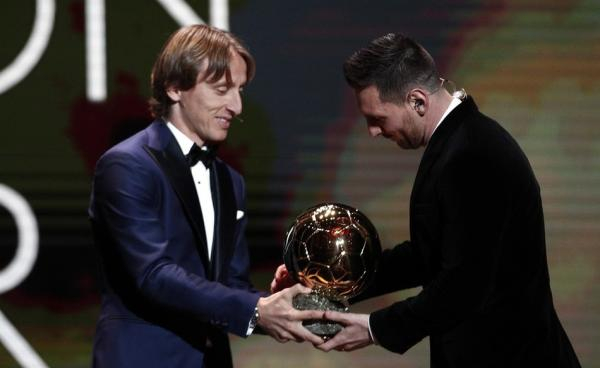 莫德里奇为梅西颁奖。