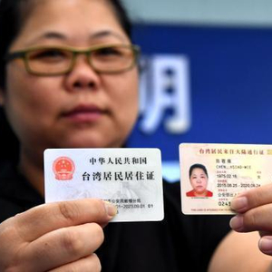 资料图:台胞陈筱薇展示自己领到的台湾居民居住证和其台湾居民来往大陆通行证。 张斌 摄
