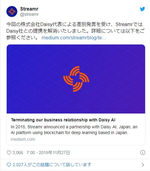 11月27日,瑞士企业Steamr宣布取消与大泽担任CEO的Daisy公司的合作关系,该公司创始人称“大泽的种族歧视言论显示了其丑恶嘴脸,这令我十分震惊”。报道称,这对大泽的事业造成巨大冲击。
